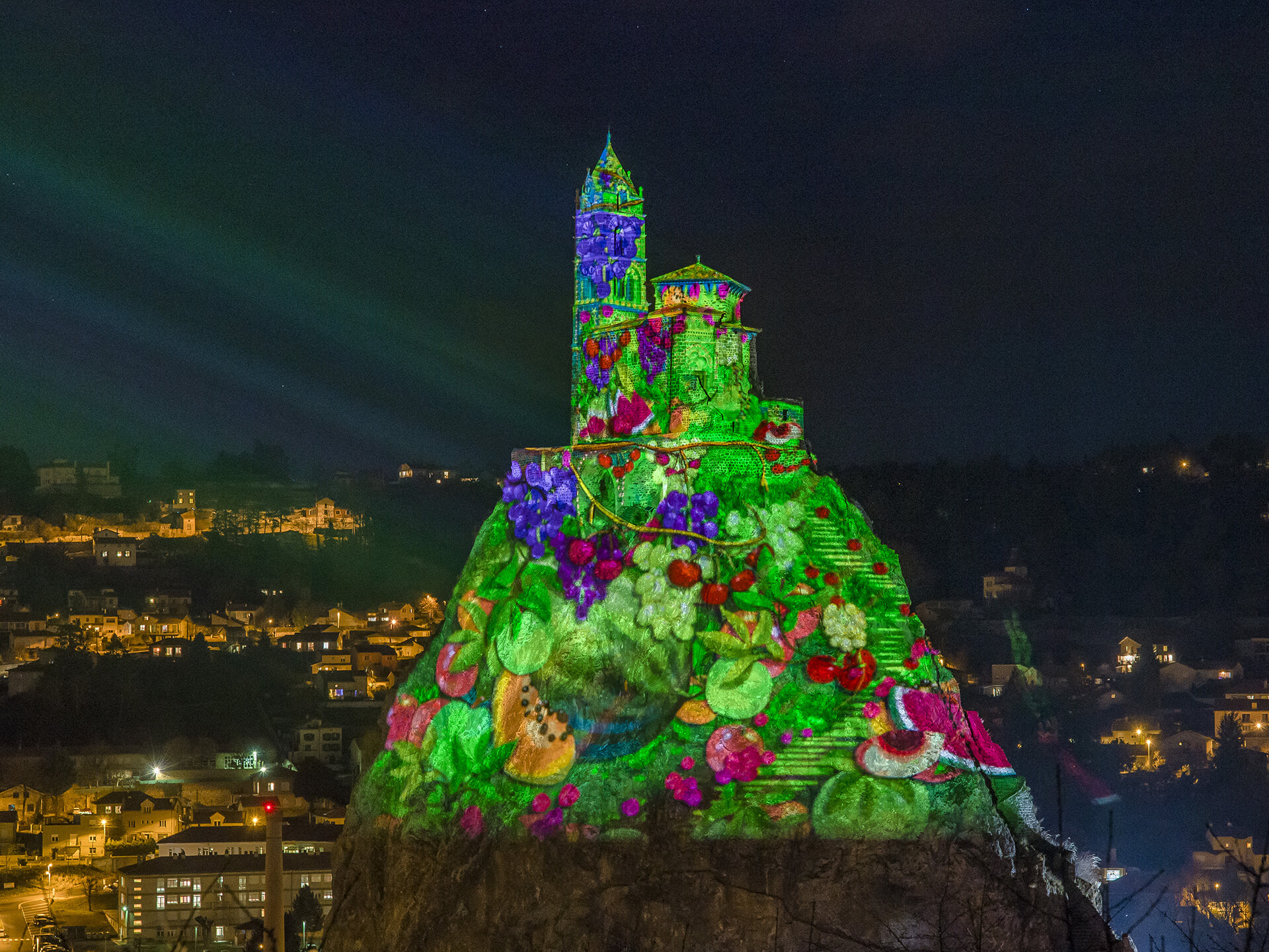 Parmi les grandes nouveautés, Chapelle Saint-Michel d’Aiguilhe sur son spectaculaire Rocher d’Aiguilhe offriront un nouveau spectacle sur ce site de projection exceptionnel et unique.